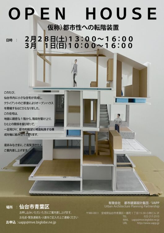 昨年2月に着工した仙台市内の住宅がまもなく完成しますので、クライアントのご厚意により見学会を開催させていただきます。